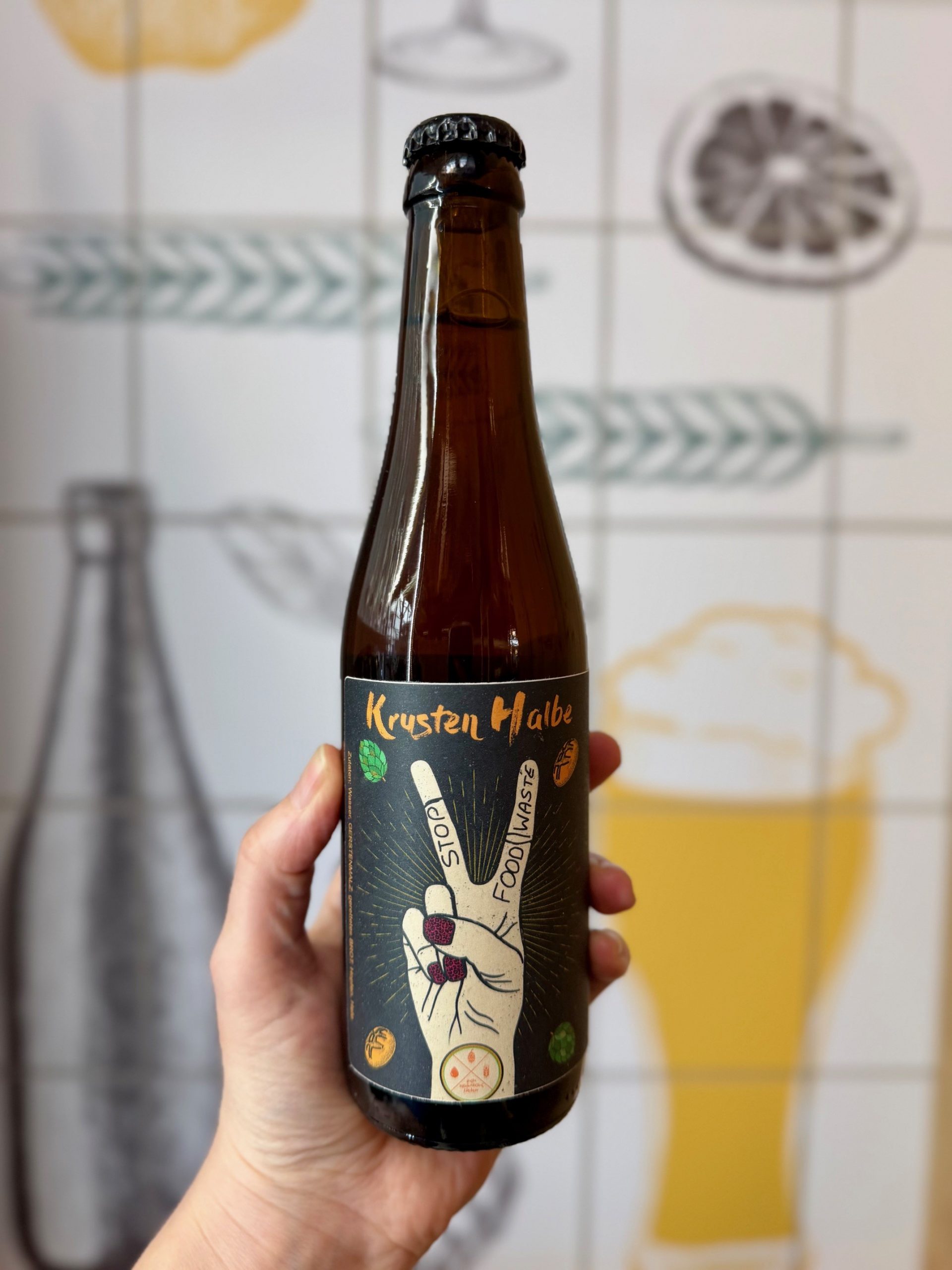 Und warum „Bier“ in Anführungsstriche? Die Krusten Halbe darf offiziell nicht als klassisches Bier bezeichnet werden. Hintergrund ist das Reinheitsgebot, das vorsieht, dass Bier ausschließlich aus Wasser, Hopfen und Malz besteht. Da bei dieser Kreation ein Teil des Malzes durch gerettetes Brot ersetzt wird, wird sie rechtlich als Biermischgetränk eingeordnet.