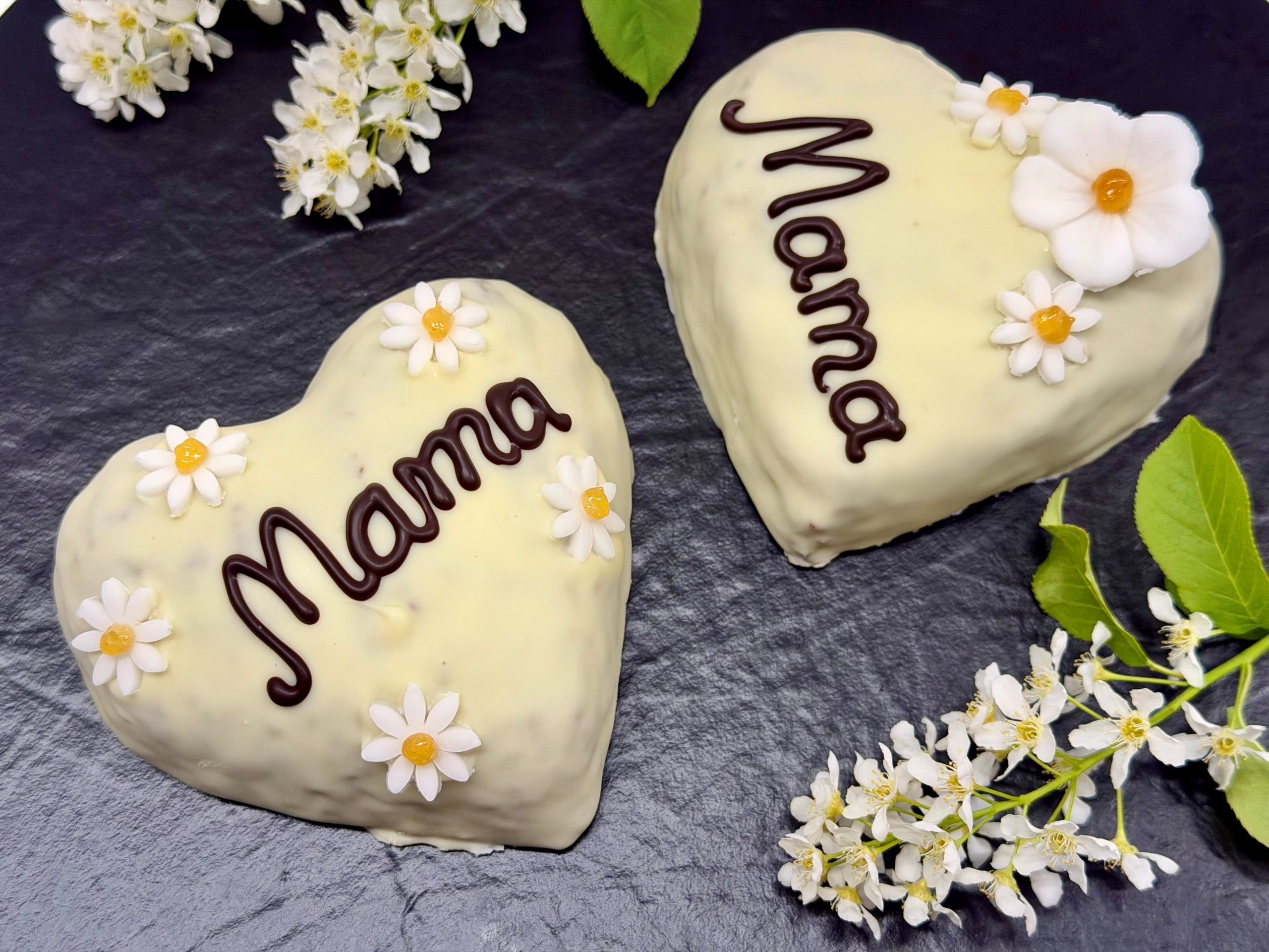 Überraschen Sie sie mit einem liebevoll gestalteten Muttertagsherz aus unserer Backstube, erhältlich auf Vorbestellung: